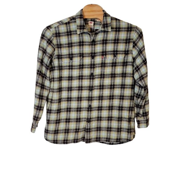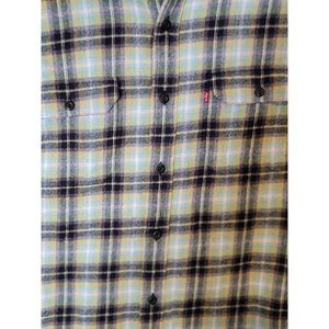 Levis Relaxed Fit Heavy Flannel Shirt XL Black Green Yellow Plaid Long Sleeves