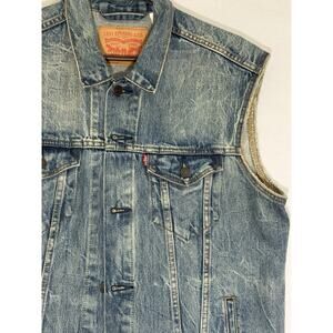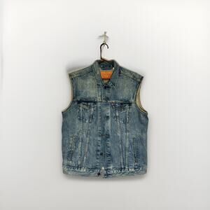 Levi’s Relaxed Trucker Denim Vest Men’s L Blue Wash Jean Jacket Sleeveless