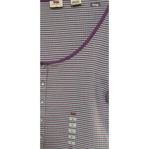 Levi’s Retro Women’s Britt Snap Short Sleeve Ribbed Purple Blue Crop Top L