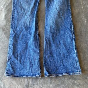 A cool pair of Levi's jeans, featuring an extra-high rise, a classic boot-cut silhouette, and just a touch of stretch