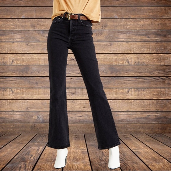 Levi’s Ribcage Bootcut Jean in Black Lake is a 90’s inspired take on the 501 Originals
