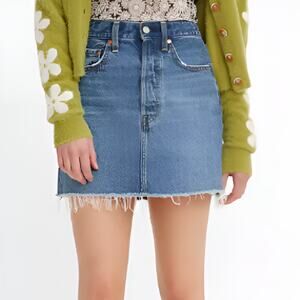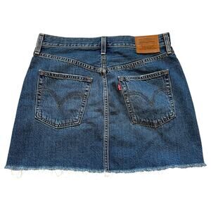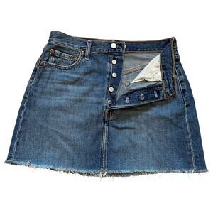Levis Ribcage Button Fly Raw Hem Cut Off Denim Mini Skirt Blue Size 29