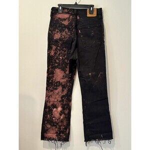 Levi's Ribcage Crop Flare Jeans Black w/ Bleach Distressing Button Fly Sz 27 EUC