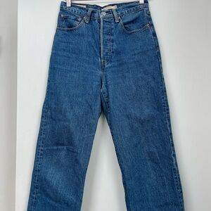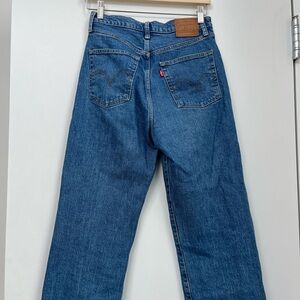 Levi’s rib cage high rise jeans with button closure. Classic blue color. Perfect for everyday wear.