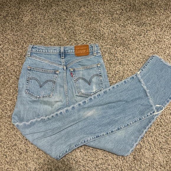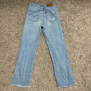 Levis Straight leg high rise blue jeans, broken in but in excellent condition. I love these jeans they just don’t fit anymore. 24 inch waist button fly.