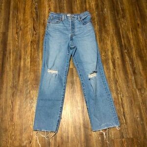 Levi's Ribcage Jeans Women's 26 Straight Ankle Button Fly High Rise Denim