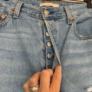 Levi's Ribcage Ripped High Waist Straight Ankle Distressed Jeans sz 31