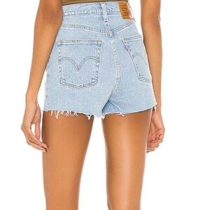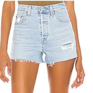 Chic Levi's denim shorts. Light blue with distressed details. Perfect for everyday wear.