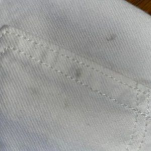 in almost perfect condition except for a tiny grey stain on left seam of left back pocket, as reflected in price