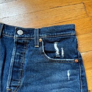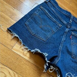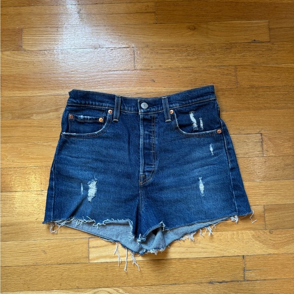 Distressed Levi’s Ribcage Shorts Very good used condition Button fly See photos for measurements