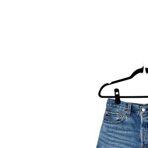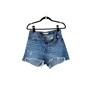 Levi's Noe Departure Wash Ribcage High Waisted Hidden Button Fly Closure Contrast Topstitching Classic Five Pocket Styling Distressed Frayed Raw Hem Denim Shorts Cutoffs Size 28 - Excellent condition.