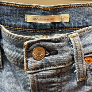 Levi’s Ribcage Straight jeans in a classic medium blue wash.