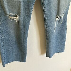 Very good condition, button fly closure, distressed, high waisted jeans.