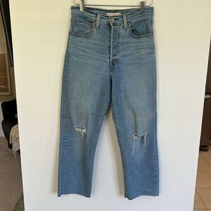 Levi’s Ribcage Straight Ankle Distressed High Waist Button Fly Jeans Size 27