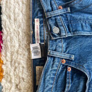 Brand new, never worn non stretch denim medium wash. Runs a little small due to non stretch. Super high waisted. 1 pair has tags, 1 does not.