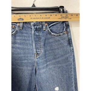 Levis Ribcage Straight Ankle High Rise Jeans Womens 25x27 Distressed Button Fly. Gently used with no flaws found. Measurements in photos. Fast shipping!