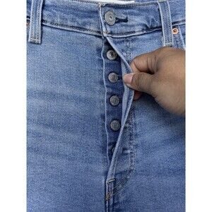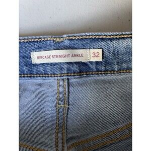 Levi's Ribcage Straight Ankle Buttonfly High-Rise Raw Hem Stretch Blue Jeans Womens Size 32.