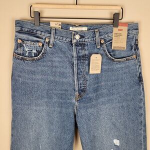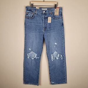 Levi's Ribcage Straight Ankle Jean High Rise Distressed Blue Size 32 NWT