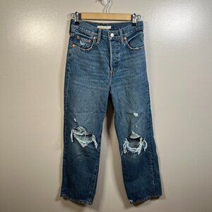 Levi's Ribcage Straight Ankle Jeans Size 25 Distressed Button Fly High Waist