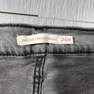 Levi's Ribcage Straight Ankle Jeans Women's Size 24W Button Fly Gray Denim