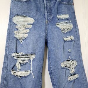 Levi's Ribcage Straight Ankle Light Indigo Destructed Button Fly Jeans Size 28