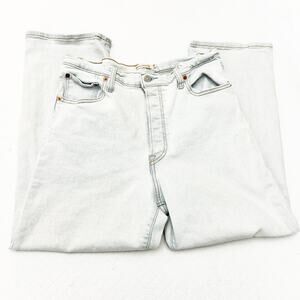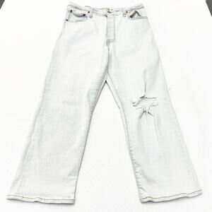 Levi's Ribcage Straight Ankle Light Wash Button Fly Ripped Denim Jeans Size 32
