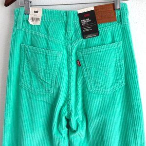 Levi's Ribcage Straight Ankle Pants Size 26x27 Green Corduroy Cotton High Rise
