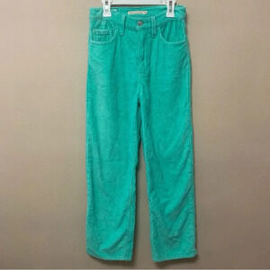 Levi’s Ribcage Straight Ankle Pants in Electric Green Corduroy Size 24