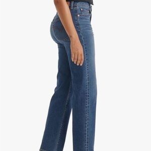 Stylish straight leg jeans by Levi's. Comfortable fit with a classic blue hue. Ideal for versatile wear.