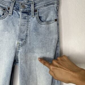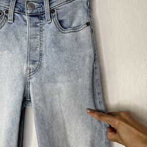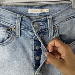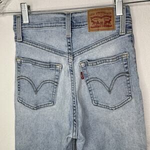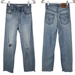 Levis Ribcage Straight Distressed Knees Size W24 L27 Button Fly, Casual, Classic, School, College, Spring, Summer, Fall, Winter, Versatile.