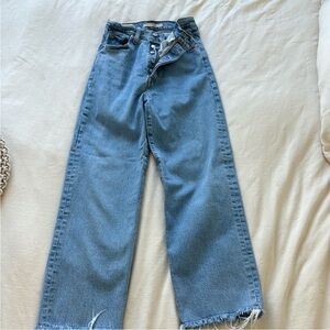 Stylish light blue jeans with a button-fly design in EUC. Perfect for casual wear.