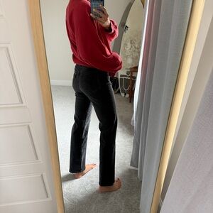 Levi's high-rise ribcage jeans in a faded charcoal wash.