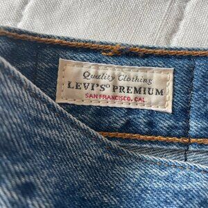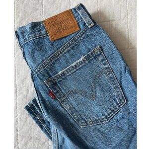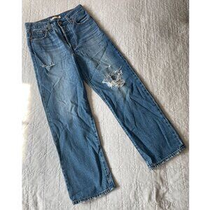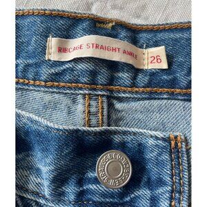Levi's Premium Ribcage Straight Ankle denim jeans in distressed blue, size 26" waist. These are high waisted and very flattering. They were worn once or twice. Just a little too tight to keep, unfortunately. Nearly brand new.