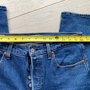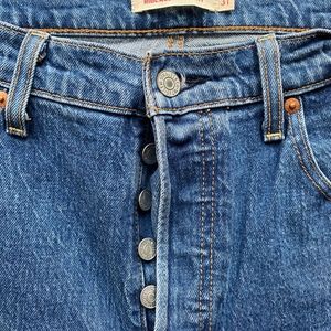 Classic straight leg design. Button fly closure. Durable denim material. Ribcage straight