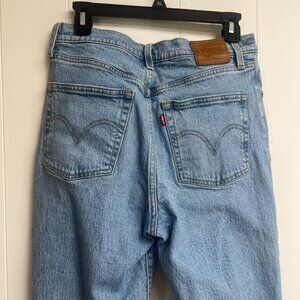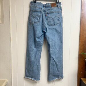 Levi's Ribcage Straight Light Wash Distressed Button Fly Raw Hem Jeans Size 29