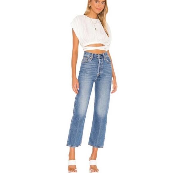 Levi's Ribcage Straight Women's Ankle Jeans in At The Ready Medium Wash Sz 24
