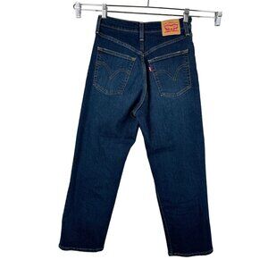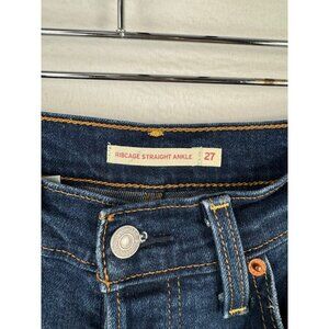 Levi's Ribcage Straight Ankle Jeans offer a modern vintage look with a distressed finish and button fly. Designed for comfort and style, these jeans are a standout addition to any wardrobe. Size 27.