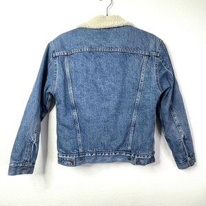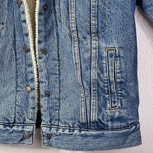Levis Original Sherpa Lined Trucker Blue Denim Jean Button Jacket Womens Size XS