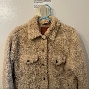 Levi’s Faux Fur Sherpa Utility Jacket. Size medium. Snap closure. 100% polyester