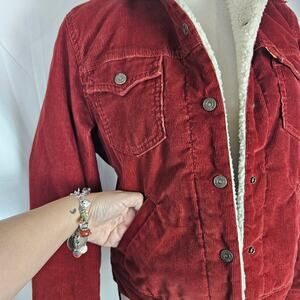 Levi's Sherpa Lined Corduroy Jacket Womens Medium Red Fall Winter 90s Y2K Casual