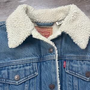 Levi’s Sherpa Lined Denim Trucker Jacket Blue Fleece Collar M Vintage Americana