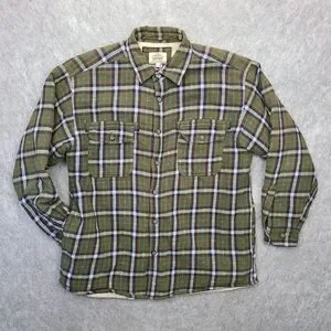 Levis Sherpa Lined Flannel Shirt Men's L Shacket Jacket Green Plaid Workwear