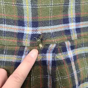 There is a hole on back of jacket (2nd photo) and a small one on front (3rd photo). Other than that the rest of the jacket is in good condition. Would make a good yardwork jacket. For actual measurement see photos.
