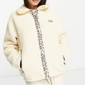 Levi’s Sherpa Teddy Shacket Leopard Piping Women’s Size XS