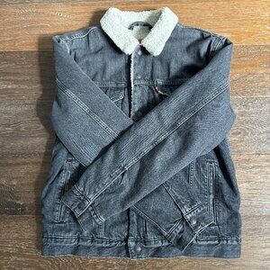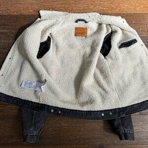 Levi's Sherpa Trucker Jacket, Men's size Medium. Faded black denim with white sherpa lining. Barely worn.