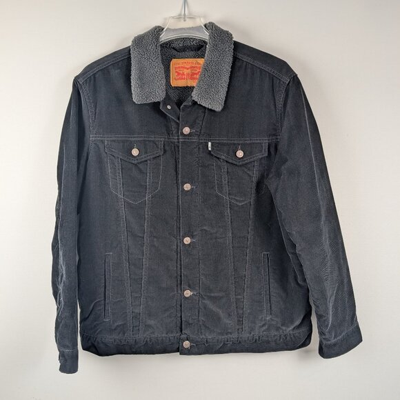 Levis Sherpa Trucker Jacket Corduroy Black Like New - men's XXL