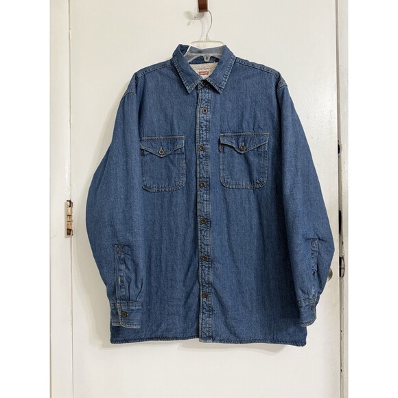 The Levi's Sherpa Men's Shirt Jacket in size Large is a stylish and versatile outerwear option for men. Made with a cotton outer shell material, this jacket features a classic blue color and a bomber jacket style, perfect for adding a touch of rugged cool to any outfit. With its iconic Levi's brand and quality construction, this shirt jacket is a must-have piece for any man's wardrobe.