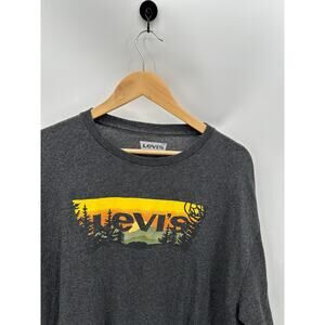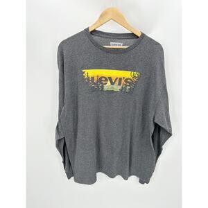 Levi's Shirt Men 2XL Grey Long Sleeve Logo Graphic Front Crew Neck Tee