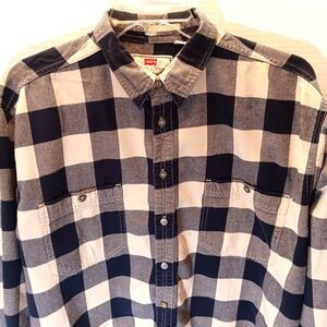 Levis Shirt Men XL Blue Beige Plaid Flannel Long Sleeve Western Rodeo Cowboy