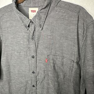 Levis Shirt Mens 2XL XXL Dark Gray Button Up Short Sleeve Casual